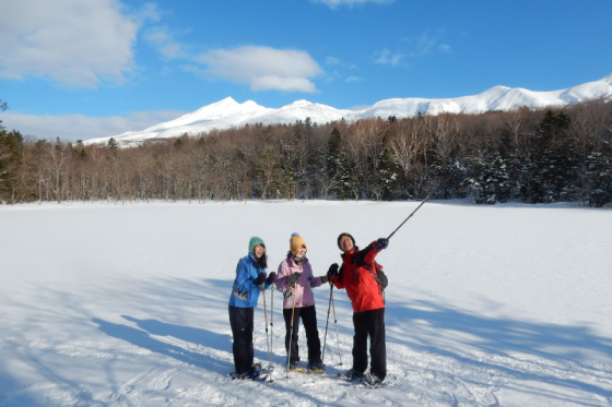 知床五湖のツアーは、他のガイド会社は二人以上で催行しますが、知床のガイド屋pikkiはお一人でも催行可能です。用具に関しては、スノーブーツの有料レンタル(300円)があります。