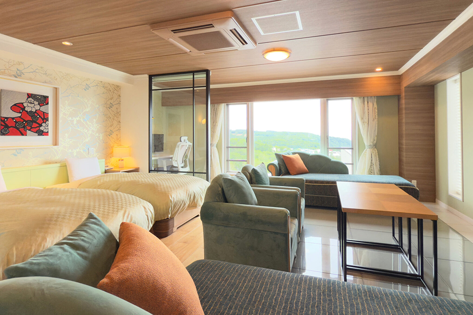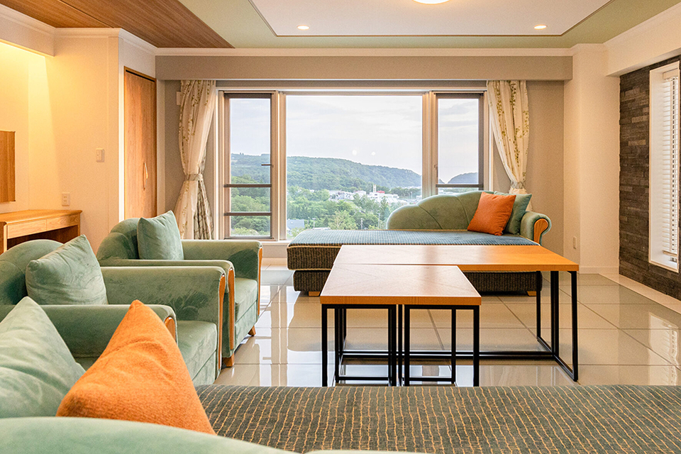 広々としたデラックスルームでは、家族や友達と気兼ねなくゆったり過ごせます。