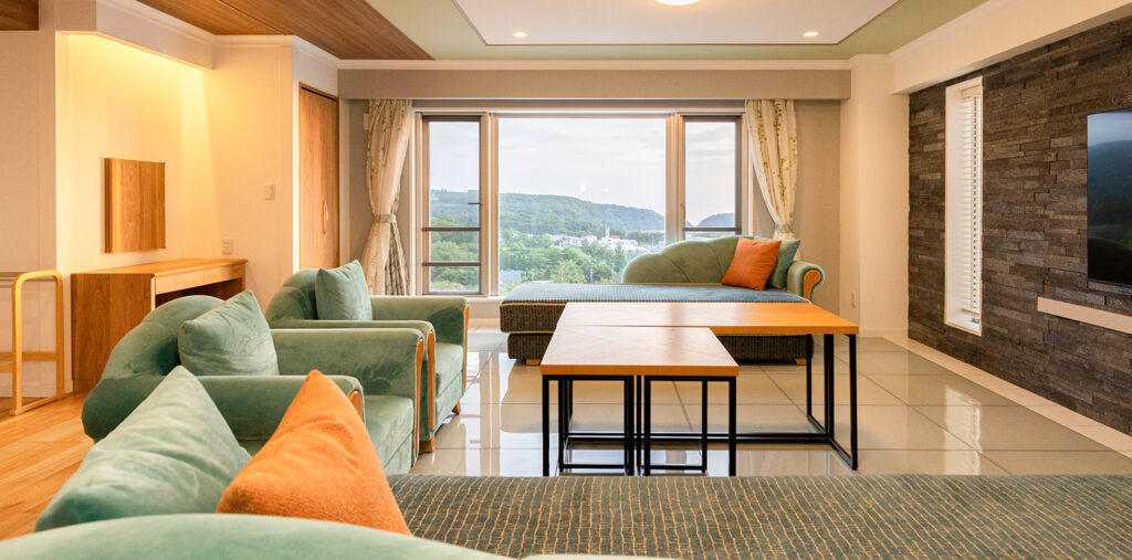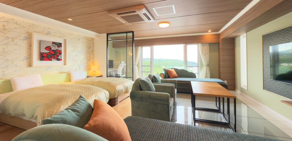 広々としたデラックスルームでは、家族や友達と気兼ねなくゆったり過ごせます。