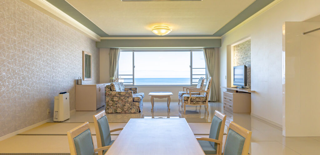 和と洋を取り入れたモダンな客室は、カップルから家族、グループまで幅広く対応。最大9名まで宿泊可能な広々空間で、世代を超えた旅行にも最適です。