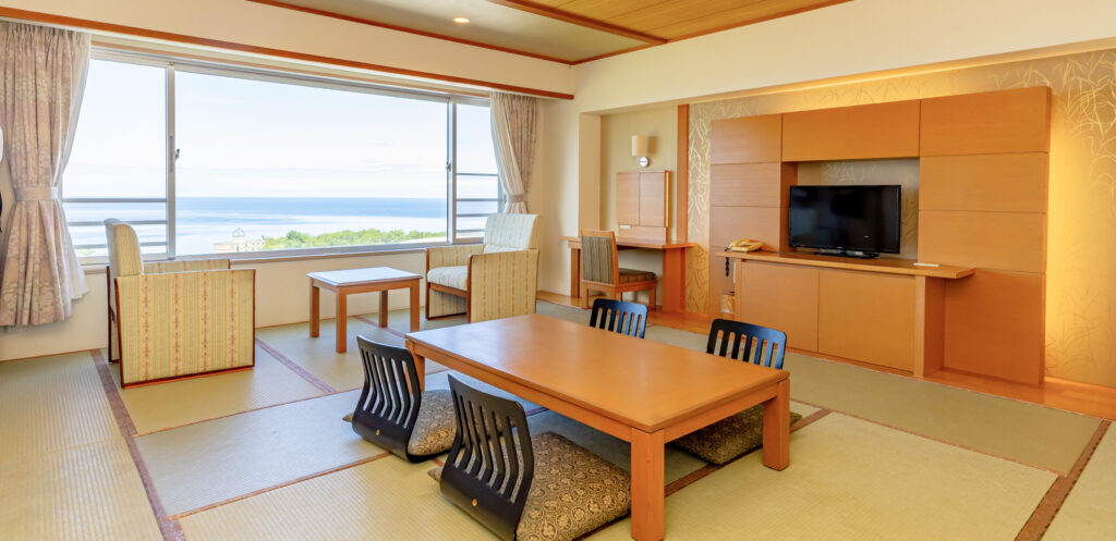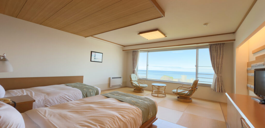 オホーツク海を一望できるお部屋では、朝日や夕焼け、四季折々の景色に包まれ、自然の中で至福のひとときをお楽しみいただけます。