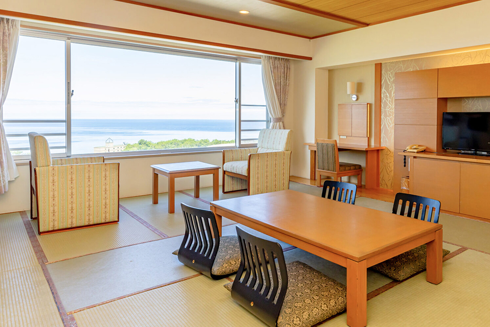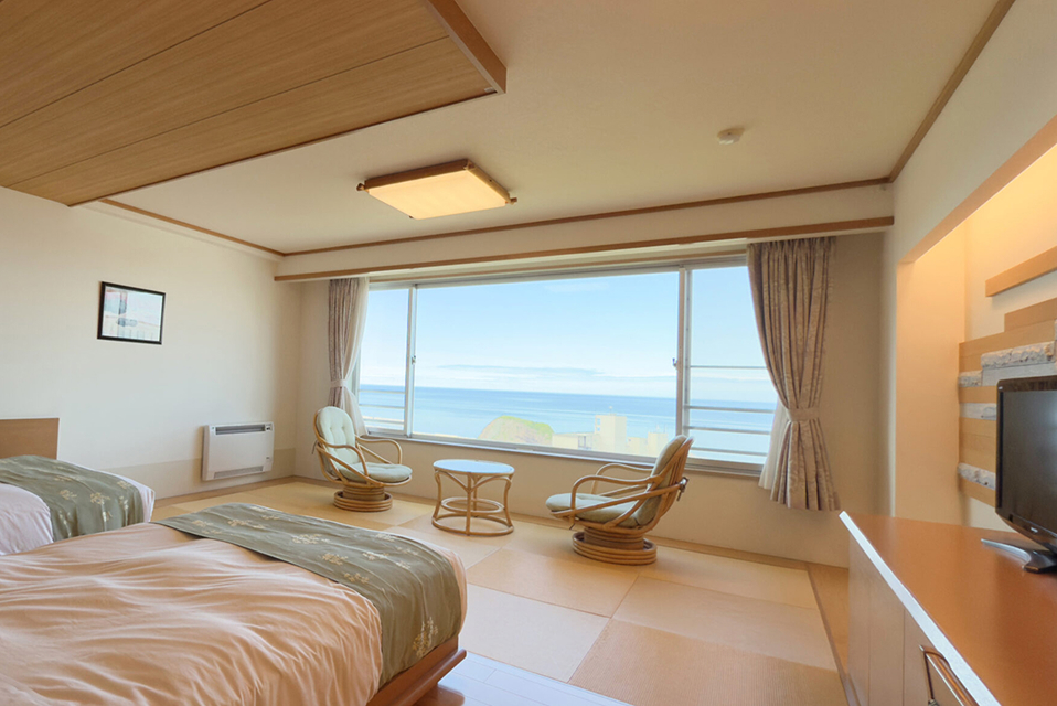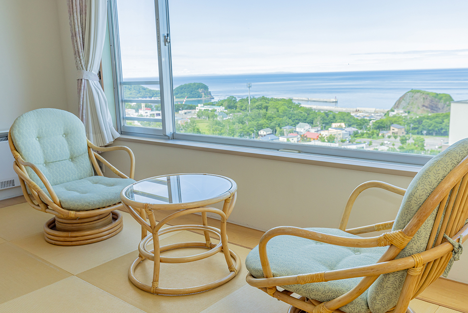 オホーツク海を一望できるお部屋では、朝日や夕焼け、四季折々の景色に包まれ、自然の中で至福のひとときをお楽しみいただけます。