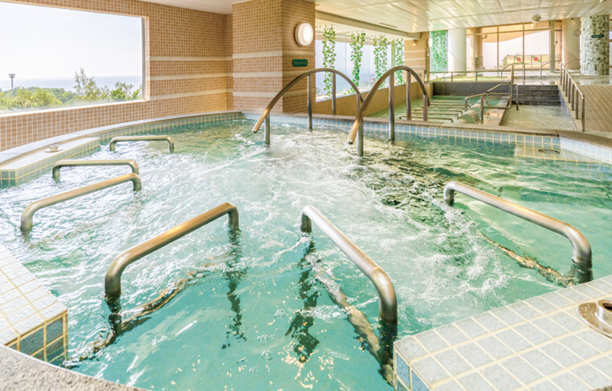 大浴場は、天然翡翠をあしらった癒やしの空間。