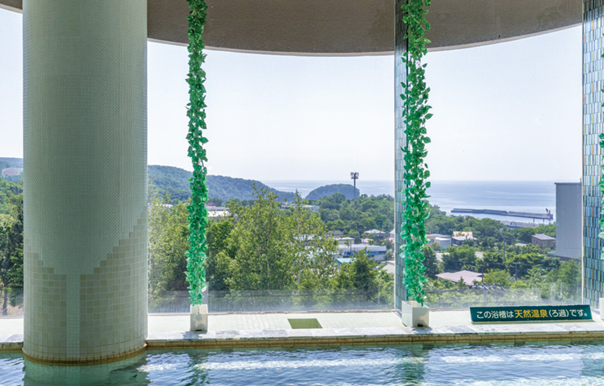 高台に位置し、露天風呂からオホーツク海を見下ろしながら